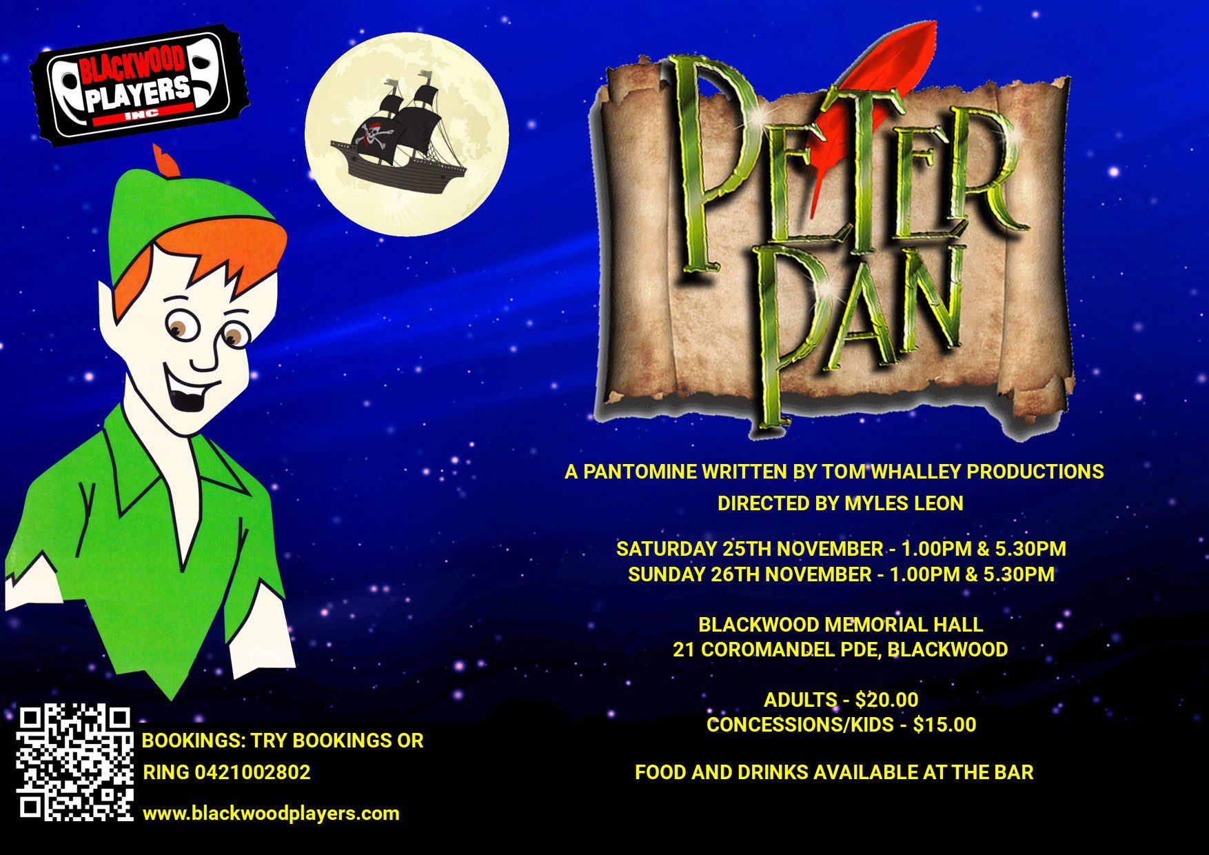 Peter Pan – A Pantomime written by Tom Whalley Productions, directed by Myles Leon.