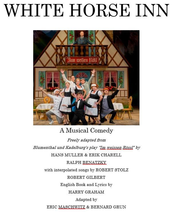 The original English version of White Horse Inn had a cast of 200 people. In keeping with the modern European tradition, this production will have a cast of 15 people.