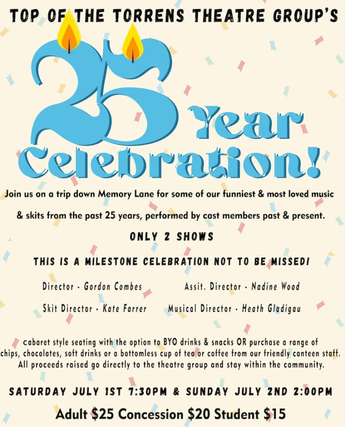 Top Of The Torrens Theatre Group have thrived since their inception. That’s a credit to a series of committed individuals over the years. All power to them for powering on in this way. Long may they continue.