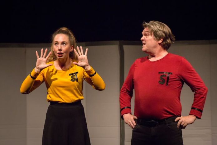 Again changing venues, Brandt Eustice delivers the night’s outstanding performance in “Captain Rockets Versus The Intergalactic Brain Eaters” as a dementedly obsessive TV sci-fi actor plotting vengeance on executives who plan to ditch the show. While Malcolm Walton and Jack Robins feature strongly, it’s Cheryl Douglas who deliciously steals moments with her hilarious impersonation of a TV ‘continuity’ girl, falsely smiling into the camera as if everything is going to plan.