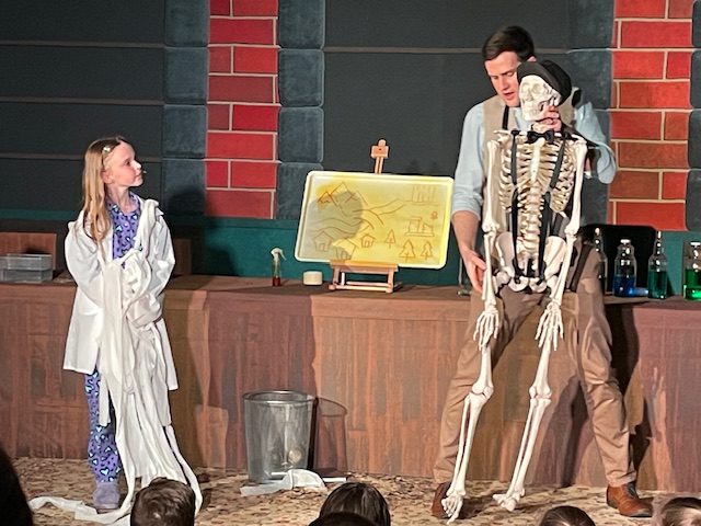 Benji Riggs and the Flying Elephant Company are active and successful in providing new and entertaining theatre for young audiences. This one hour two-handed piece is well constructed and had the audience’s keen attention from the outset. Riggs wrote the script in conjunction with Silly Science With Simon‘s Simon Blacket who, incidentally, also played the character Uncle Linus. The structure and content of the production was a skilful blend of fast-paced and varied dialogue, some illustrative songs, and some scientific experiments. All of those elements were framed within a quest for the two main characters to find the Orb of Energy and charge the Crystal of Power. Thus the play successfully combined science and fiction. That’s a neat twist, because it wasn’t science fiction in the accepted sense.