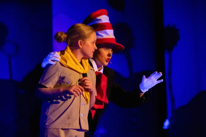 The above are the second and third lines of the first song in “Seussical The Musical” and basically sum up the philosophy of children’s’ author/illustrator Dr. Seuss ( real name Theodor Seuss Geisel) – imagination is a wonderful thing and should be used, especially by the young. Seuss’s characters still live on today and are as popular as when he first created them. One of his characters, The Grinch (he who tried to steal Christmas), is so well known that last Christmas he rivaled Santa in popularity. Ironic then that in Lynn Aherns and Stephen Flaherty’s musical adaptation of his stories, The Grinch rates only a couple of cameo appearances – kudos to Cooper Owen in this production for capturing the Jim Carrey style voice so well.