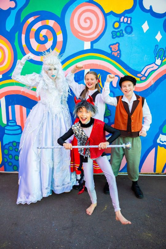 Lola Bickford was outstanding as the Wicked Imp and her strong clear voice and stagecraft all came from a small stature with penetrating effect. She had the audience mesmerised. In contrast, the stature of Rose Vincent as The Snow Queen with her towering presence over all others clearly brought out her evil intent. Her makeup and costume added significantly to her aura.